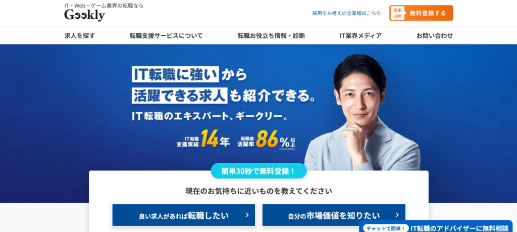 Geeklyは、これらの業界に特化した転職エージェントです。
